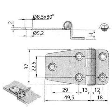 Cerniere Inox Aisi 316 76x37 Mm Mod Rovesciato