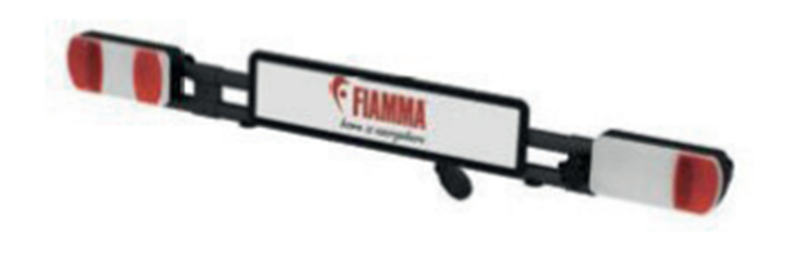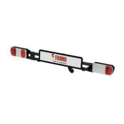 Barra portatarga in alluminio dotata di gruppo luci di segnalazione e presa a 13 poli. Può ruotare di 90°.