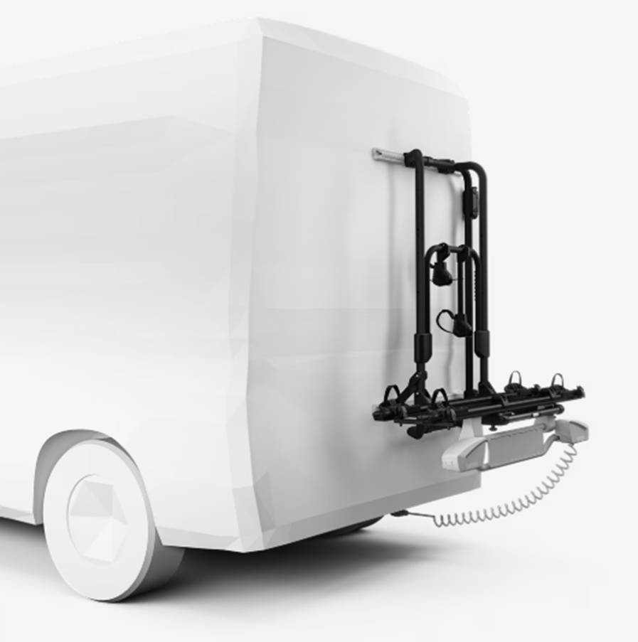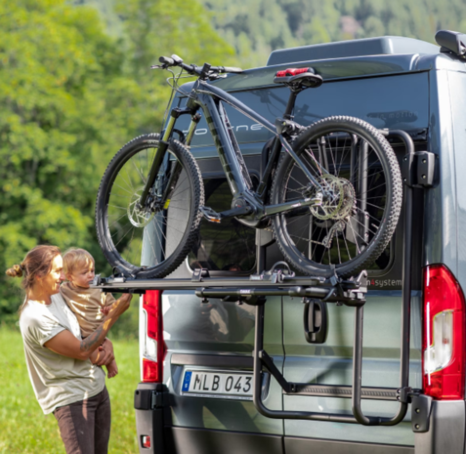 Thule VeloTrack è un portabici per bici elettriche per furgoni progettato per caricare più bici di grandi dimensioni, permettendoti però di aprire il portellone posteriore.
