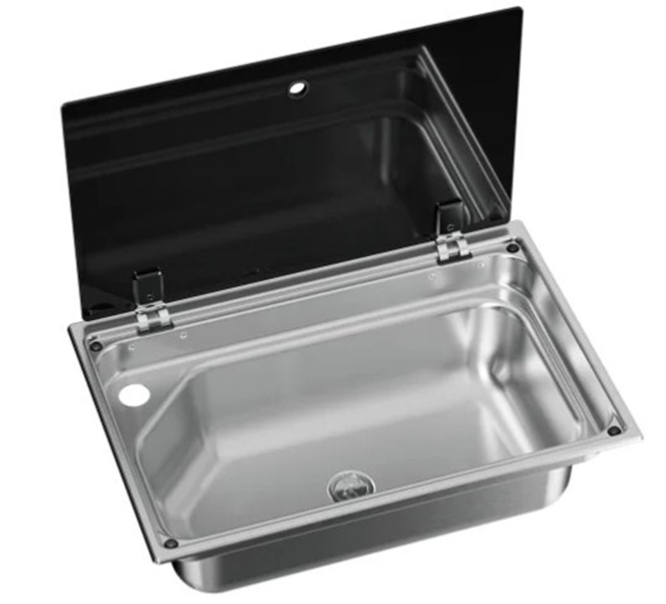 Lavello con coperchio e foro per il rubinetto dell’acqua.