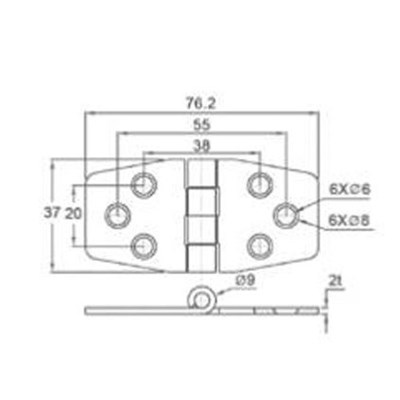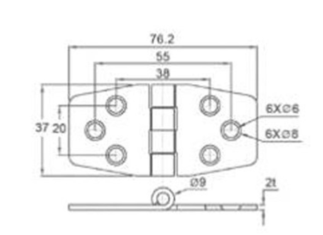 Cerniera di finitura con lamiera adesiva. Dimensioni L X P X A: 76 x 2 x 37 mm. Peso: 0.1 Kg.