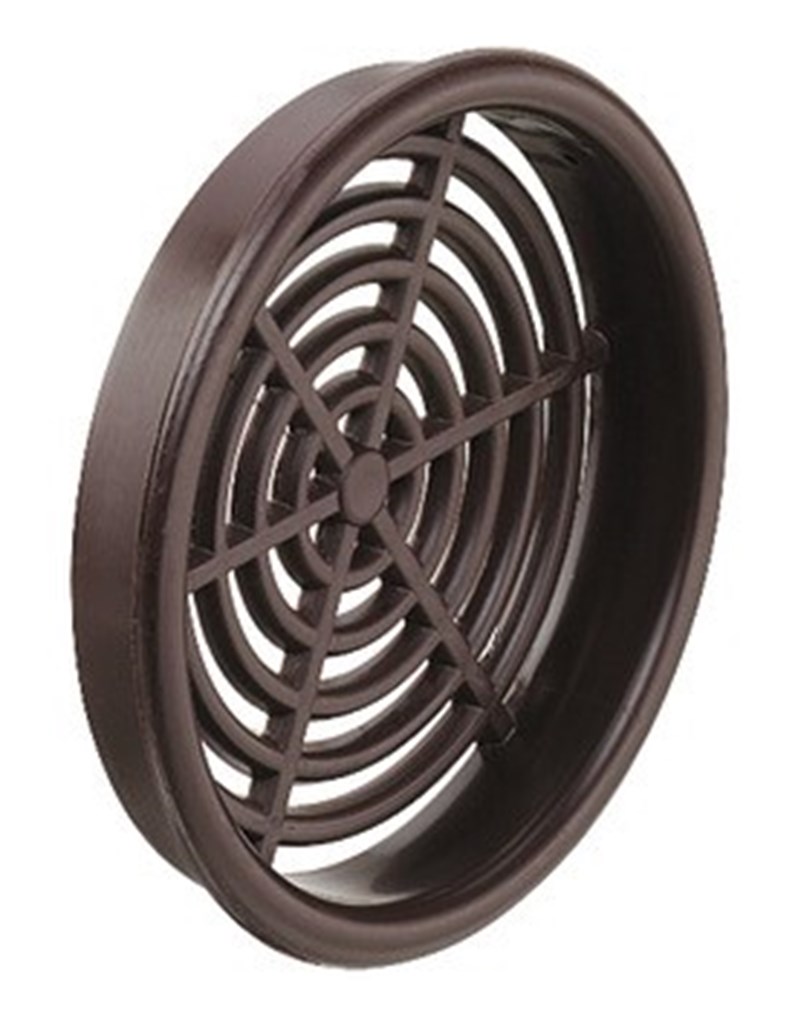 Realizzato in plastica con bordo di copertura. Da incasso: 60 mm. Dimensioni: Ø 65 mm x 2 mm. Passaggio d'aria: 13.49 cm². Colore: Marrone