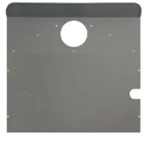 Per uscita a destra. La lamiera si fissa dietro la stufa per proteggere il mobile dal calore.