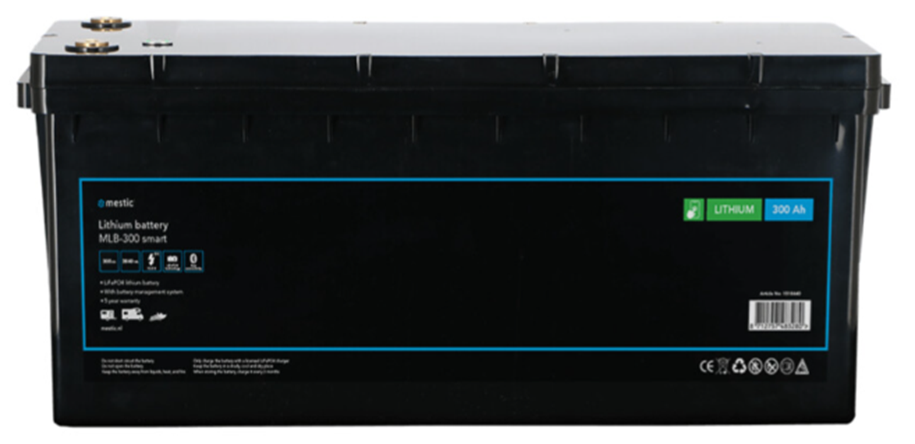 Usa la batteria al litio Mestic MLB-300 smart come batteria di bordo, per il tuo camper o per caricare i tuoi dispositivi elettronici da campeggio. Le batterie al litio hanno un sistema di gestione della batteria che ne regola tutte le funzioni vitali. Questo le rende più sicure e protette, tra le altre cose, da una carica e da una scarica sovradimensionate. La batteria al litio Mestic MLB-300 smart ha una capacità di 200 Ah. Un vantaggio delle batterie al litio è la bassa resistenza interna. Di conseguenza, la batteria si ricarica rapidamente e può essere scaricata al 100%, senza ridurne la durata. Con l'MLB-300 è possibile collegare fino a 8 batterie in parallelo. In questo modo si aumenta la capacità e si dispone sempre di un'alimentazione di riserva non appena una batteria si guasta. È possibile controllare facilmente la batteria al litio Mestic MLB-300 smart tramite l'app Mestic.