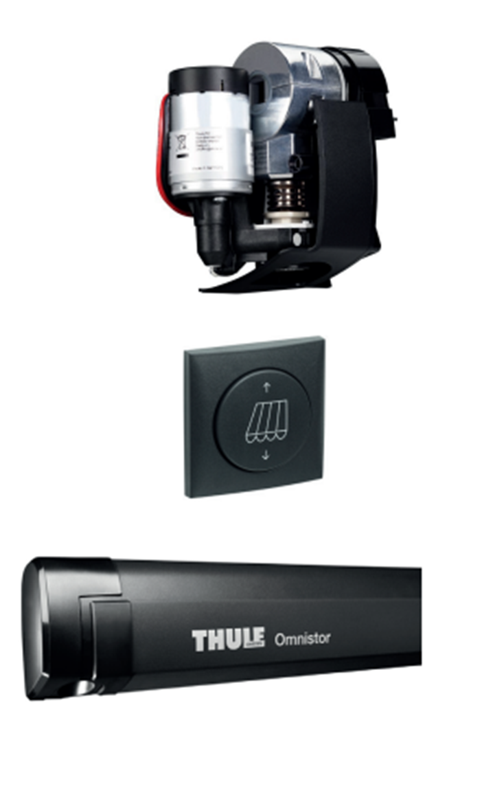 Installazione retrofit: sostituendo il riduttore di un tendalino manuale IO 5200 (solo per tendalini di lunghezza pari o superiore a 3,02 m). Per tendalini di lunghezza compresa tra 3,00 m e 5,00 m con finitura del telo Mystic Grey 31. Interruttore one-touch per avviare il motore e possibilità di comando manuale integrato con manovella in caso di interruzione di corrente. Motore con protezione termica. Approvato EMC. Protezione da inversione di polarità e cortocircuito. Consumo: in uscita 3 A / in entrata 7 A / picco 17 A. Livello di rumorosità: 65 dBA. Colore: Bianco