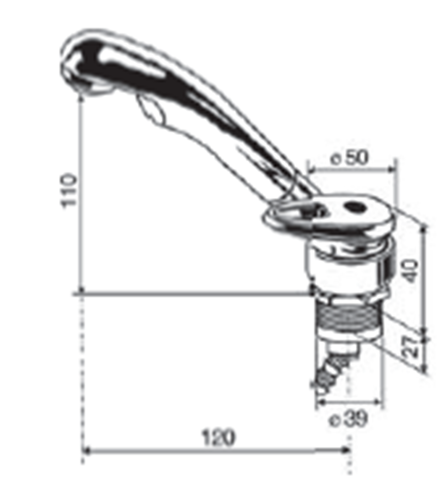Canna abbattibile 120 mm e manopola a destra, cromato.