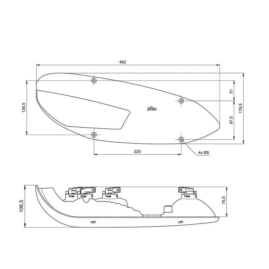 Dimensioni LXPXA: 462 x 106,5 x 178 mm