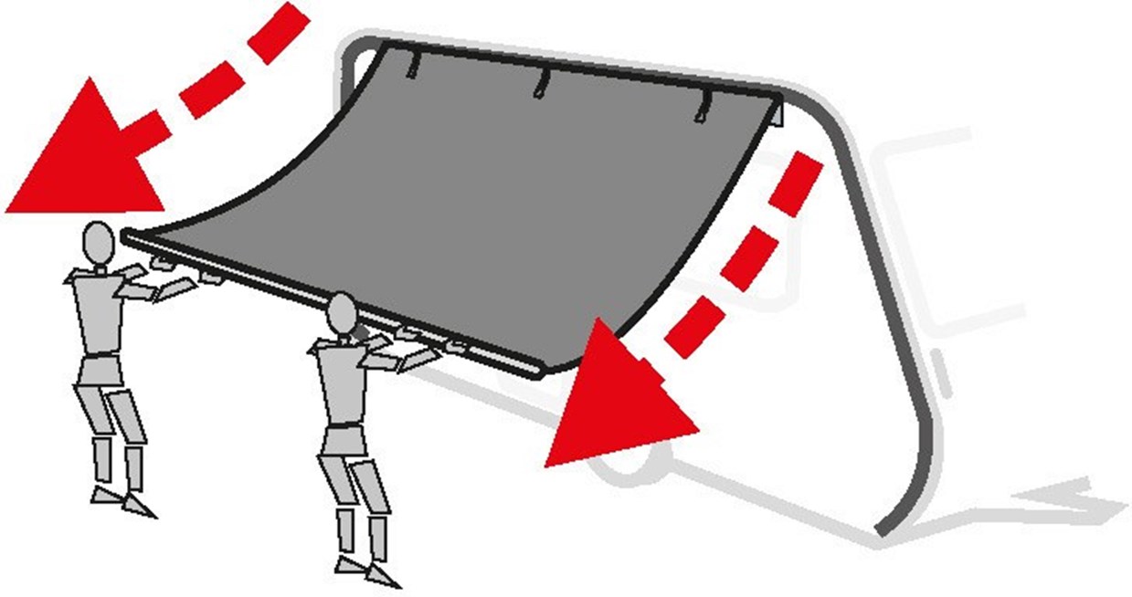 • Rullo: sistema brevettato che permette l'avvolgimento del telo nei due sensi garantendo la massima facilità dell'operazione