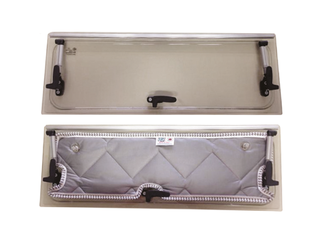 Vetro di ricambio non originale per finestre Dometic Seitz S3/S4/S5, completo di cerniera e accessori per il montaggio.
