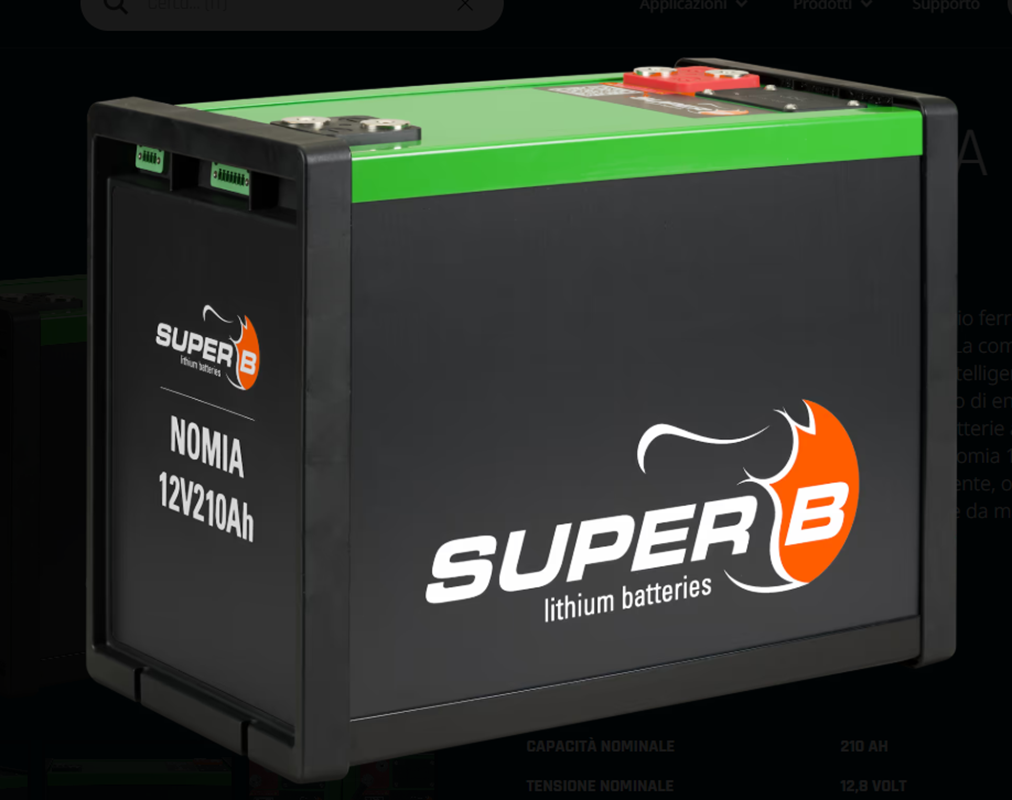 Super B Nomia 12V210Ah è una batteria ricaricabile al litio ferro fosfato con una capacità nominale di 210 Ah. L’esclusiva combinazione di tecnologia all’avanguardia e software intelligente rende questa batteria al litio una soluzione di accumulo energetico affidabile, sicura e facile da usare.