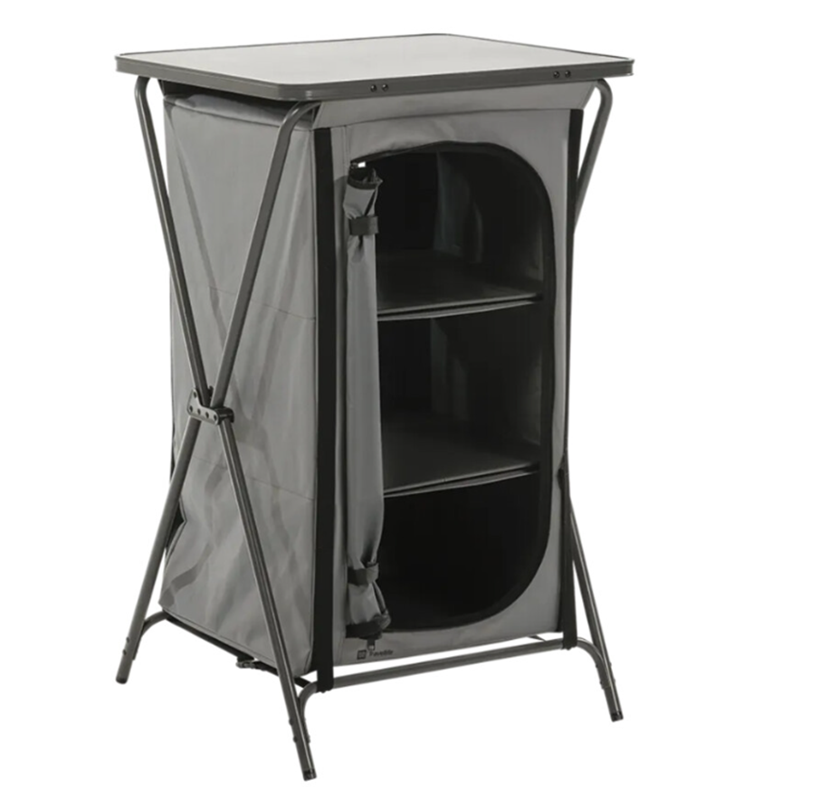 Puoi mantenere la tua tenda, il tuo camper o la tua roulotte in ordine e organizzati portando con te in vacanza un armadio da campeggio. Il mobile portaoggetti Toledo è dotato di molteplici vani portaoggetti, sia per la tua attrezzatura da campeggio che per i tuoi vestiti. Questo mobile portaoggetti è facile da costruire e grazie alla borsa per il trasporto inclusa puoi portarlo ovunque tu vada.