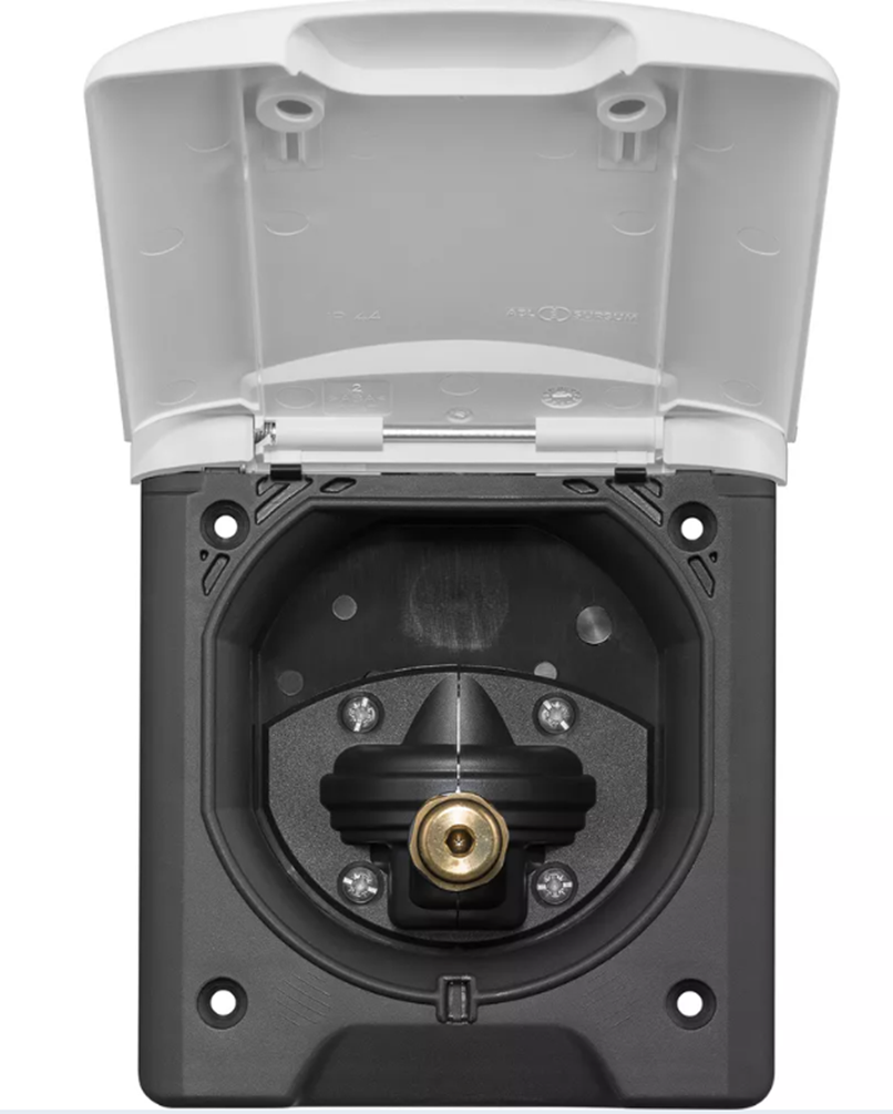 Presa dotata di riduttore di pressione e coperchio con chiusura magnetica.