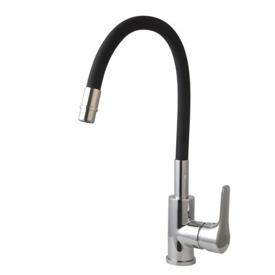 Composizione in ottone cromato con canna in silicone flessibiledi diametro 35 mm e lunghezza 500 mm, completo di tubi.