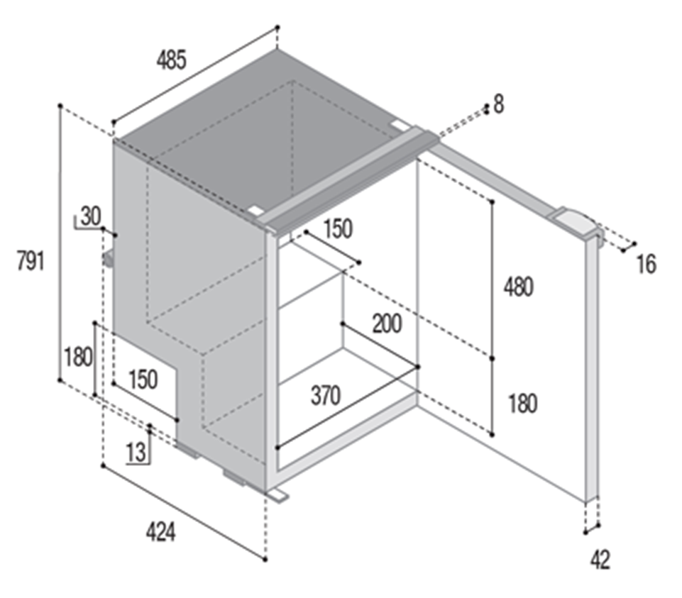 Dimensioni L X P X A: 485 x 466 x 792 mm